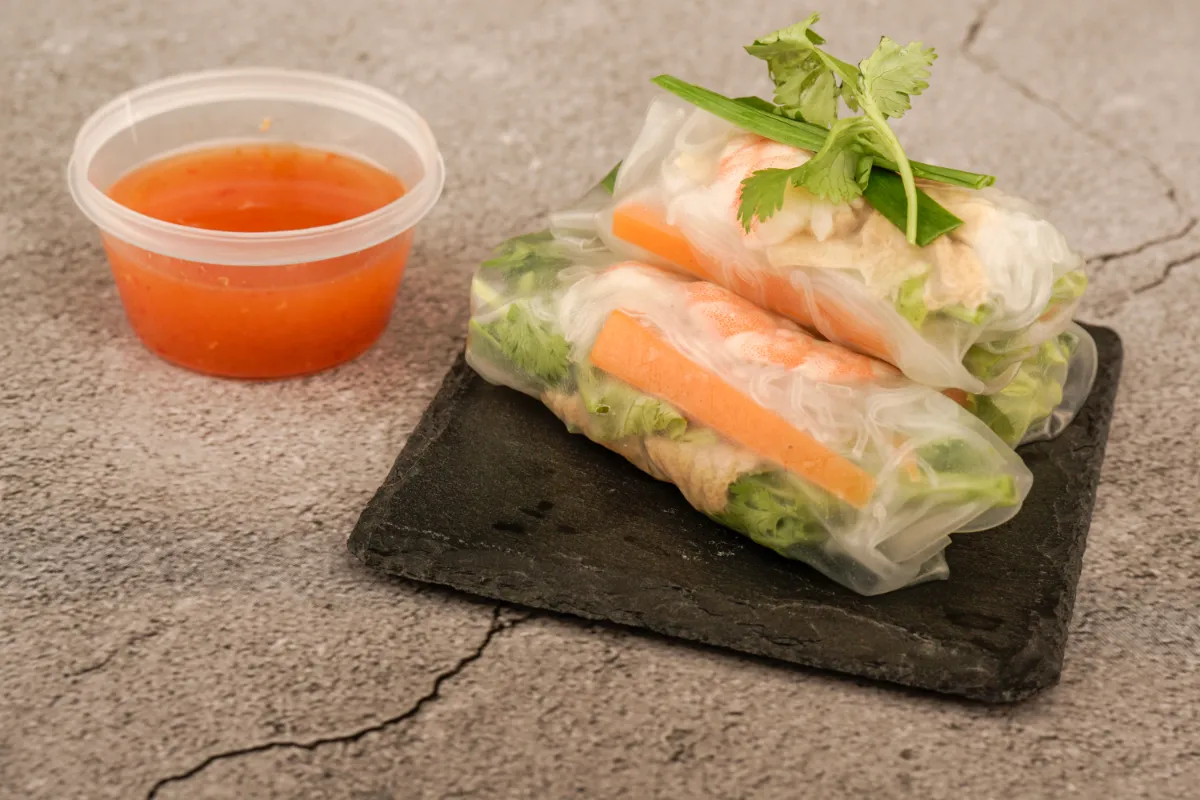 Both types are Street Food in Vietnam served with a dipping sauce. Fresh rolls usually go with a thick peanut sauce, while fried rolls go with a sweet and salty fish sauce. They are light, healthy, and very popular at parties and markets.