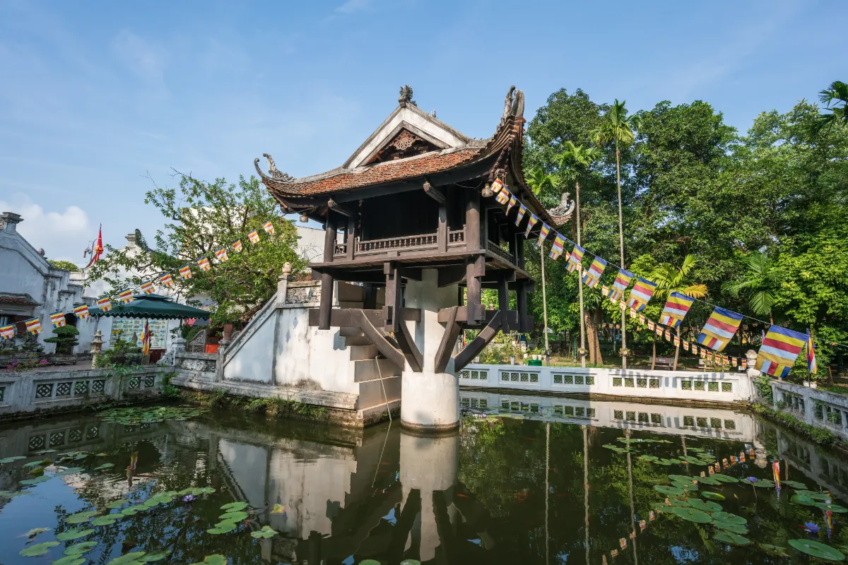 This one’s tiny. Just one little wooden temple balanced on a single stone pillar rising from a lotus pond. Built way back in 1049, supposedly inspired by King Ly Thai Tong’s dream where the Goddess of Mercy handed him a lotus flower and told him to build it.