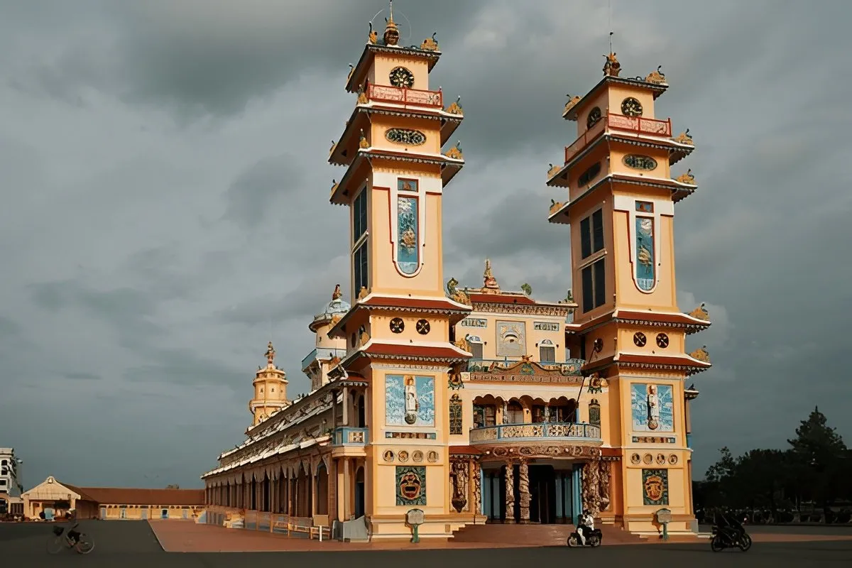 There’s just something wild about this place. It looks like someone mashed up a French cathedral, a Chinese temple, and a Hindu mandir, threw on pastel pink and yellow, and called it a day. It’s the center of Caodaism, a religion born in Vietnam in the 1920s, blending Buddhism, Christianity, Taoism, Confucianism, and more.