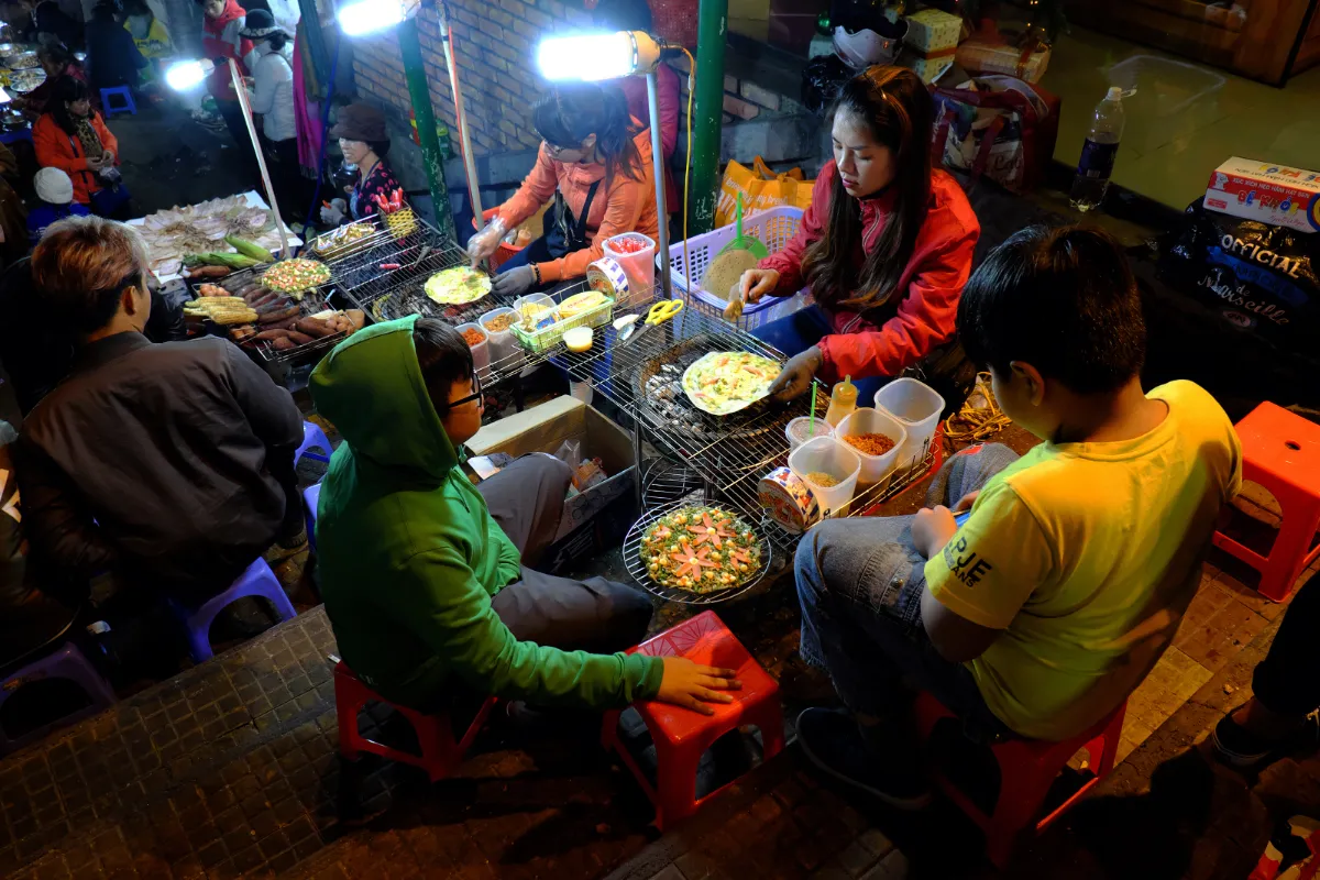 First time entering a night market? Then you will feel that night markets in Vietnam are a slight chaos. In a good way. You’ll probably pause for a second, thinking, “Where do I even start?” There’s food everywhere. People everywhere. Noise, lights, movement. It’s a lot.